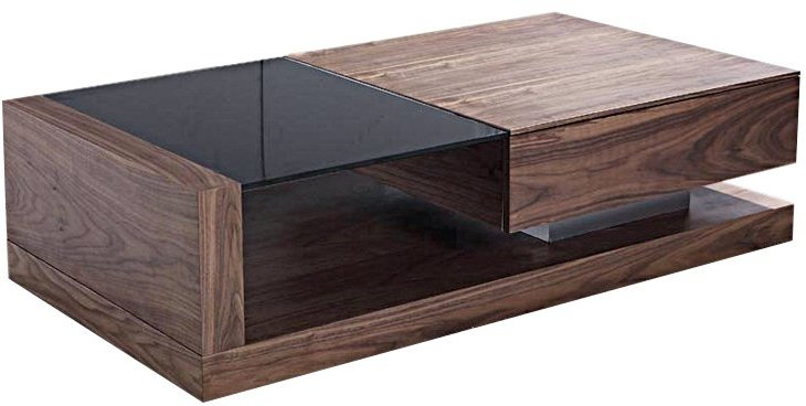 nino τραπεζάκι σαλονιού από ξύλο καρυδιάς και τζάμι μαύρο